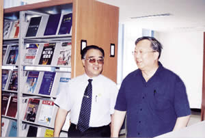 2005年6月6日,全国人大常委会副委员长、外国科学院院长路甬祥(左)正在孙成权从任伴随下视察核心工做。