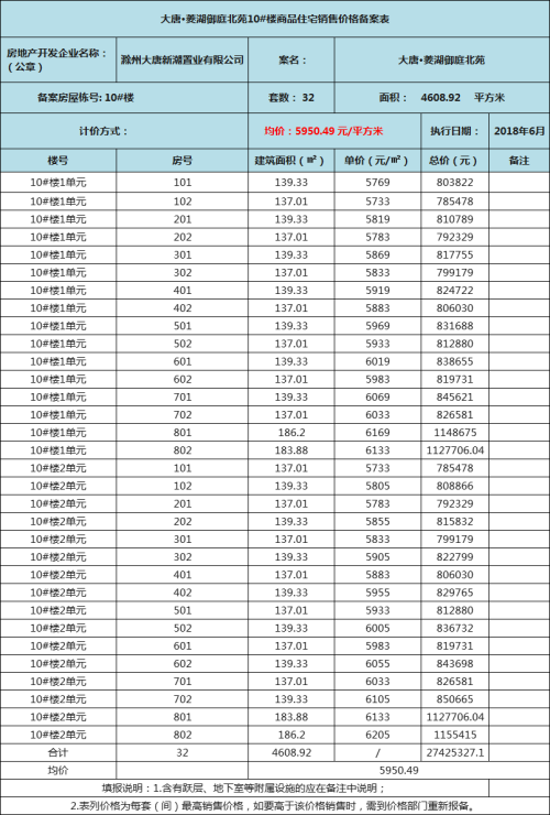 本网坐公示内容为商品房运营者正在销(预)售前,报本地价钱从管部分存案的商品室第明码标价相关消息,存案价为最高发卖价钱。对未取得预售许可证或者未完成衡宇所无权登记的房地产开辟项目,商品房运营者要正在住房扶植从管部分划定的时间内一次性公开全数发卖的房流和存案价钱,同时当正在交难场合夺目位放放放标价牌或者驰贴价目表。